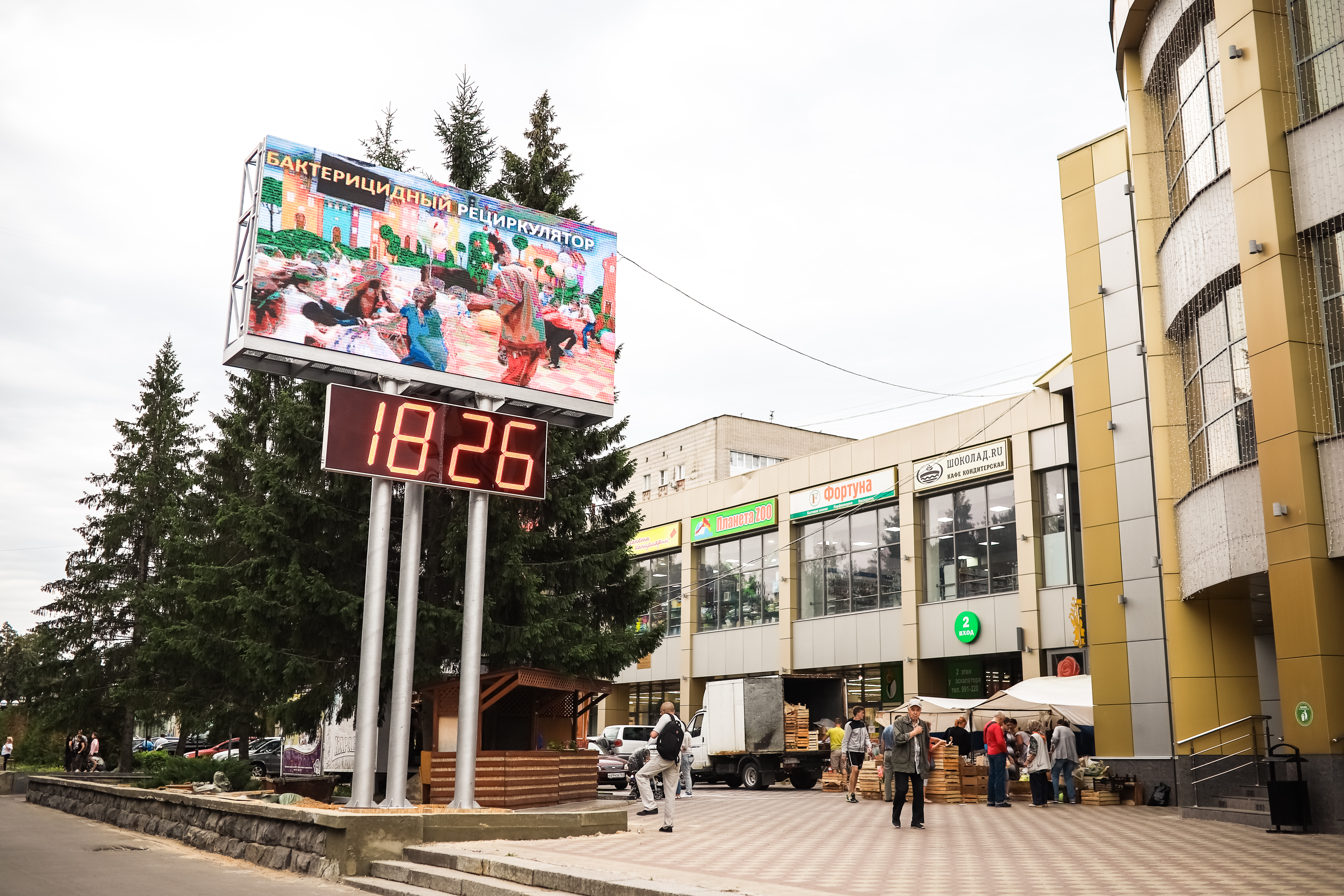 Светодиодный экран с шагом Р10 полноцветный, отлично подойдет для установки рядом с проезжей частью. Рекламную информацию будет идеально видно с 14 метров. Размер модуля у светодиодного экрана с шагом пикселя Р10 составляет 320х320 мм. Светодиодный экран р10, цена которого зависит от выбранного вами размера. Затраты на установку LED экрана р10 окупятся в течение года, за счет продажи рекламного времени.