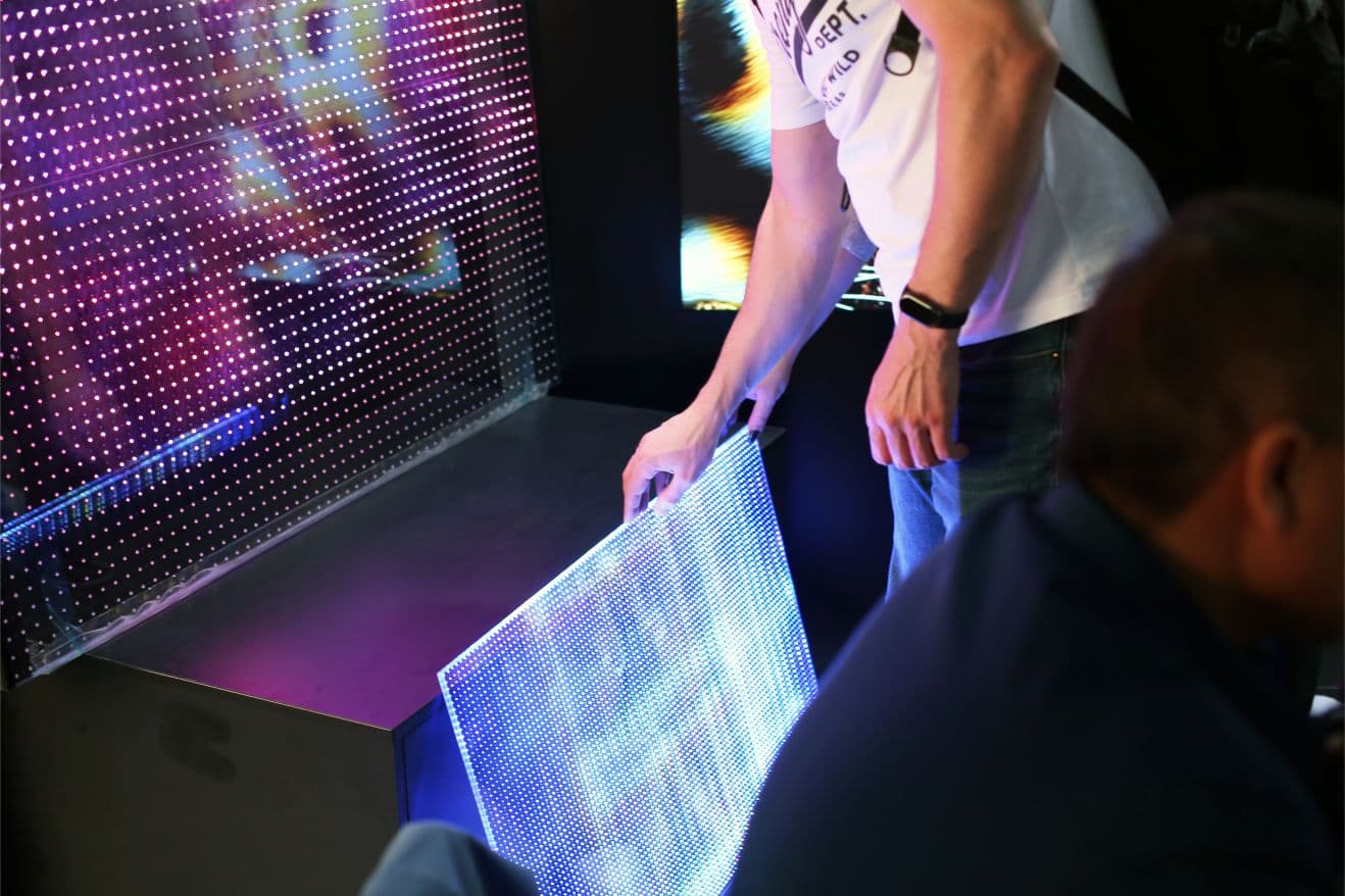 Помимо основной экспозиции наша компания успела поучаствовать в техническом туре по экспозиции AV-оборудования. Руководитель отдела продаж, Аскер Канбаров, провел обзорную экскурсию по стенду. Основной целью было расширить кругозор специалистов смежных сфер и рассказать подробнее о возможностях светодиодных технологий, которые доступны в настоящем и будущем времени.