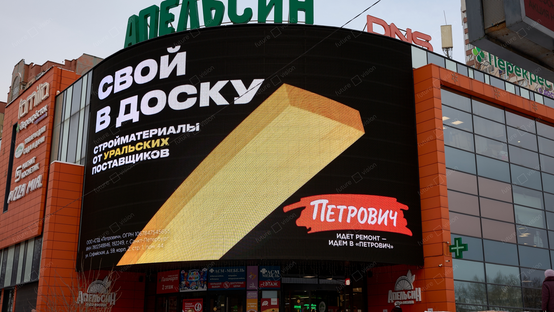 Завод Future Vision завершил проект по проектированию, изготовлению и установке светодиодного медиафасада в городе Екатеринбург. Медиафасад размером 20 х 11.5 м стал центром внимания и ярким элементом торгового центра «Апельсин».