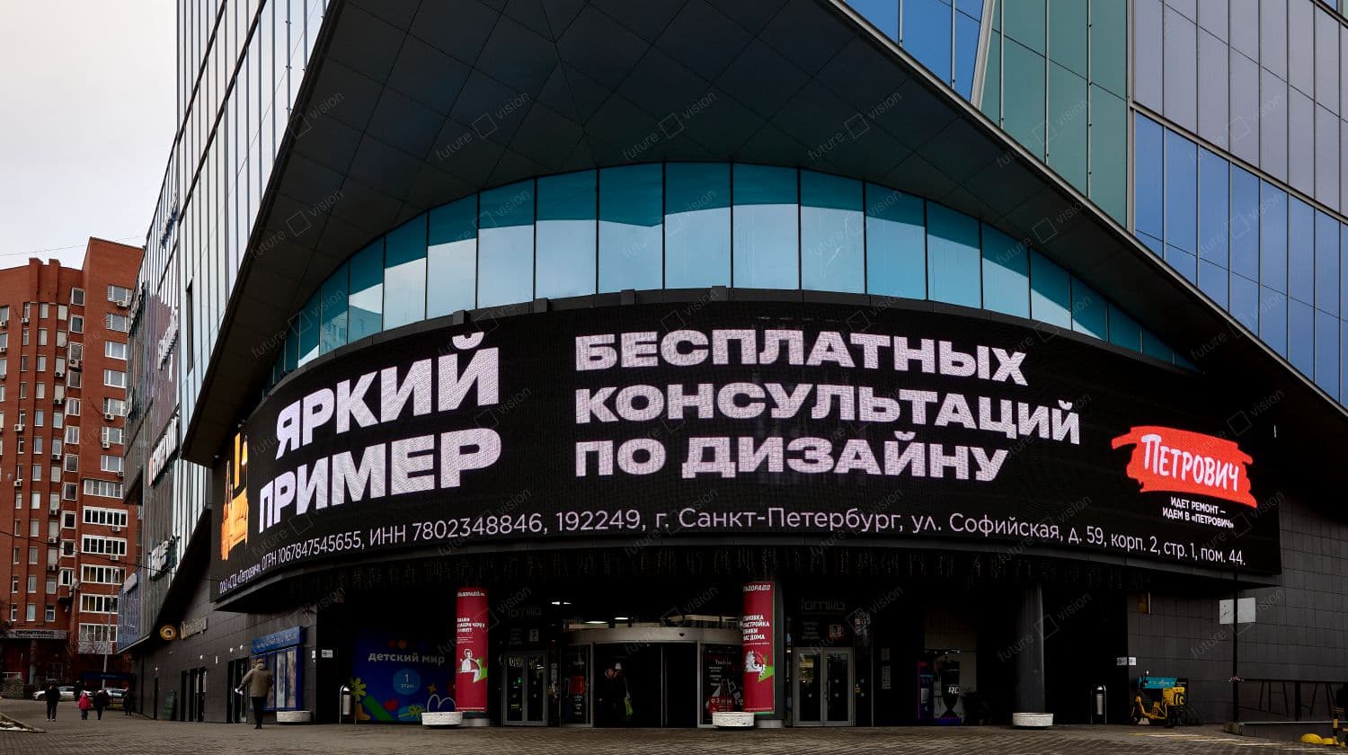 Светодиодный экран для улицы, ТЦ Алатырь Уличный LED экран для торгового центра LED экран для улицы, ТЦ Алатырь Уличный светодиодный экран для ТЦ Алатырь